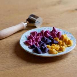 Au cours de l'atelier, vous apprendrez à préparer des raviolis classiques et des pâtes fraîches avec une touche de modernité. De plus, vous découvrirez comment ajouter une touche de couleur et des motifs. Nous utiliserons des couleurs naturelles, comme des pommes de terre violettes, des betteraves, des algues, des herbes et des poudres, qui mettront en valeur vos créations. Les ingrédients que nous utiliserons sont végétariens et sans cruauté envers les animaux. De plus, vous pouvez également demander à l'avance des options sans gluten, sans lactose et végétaliennes.